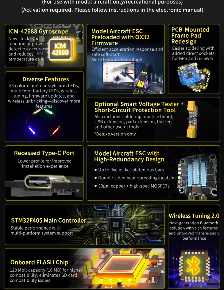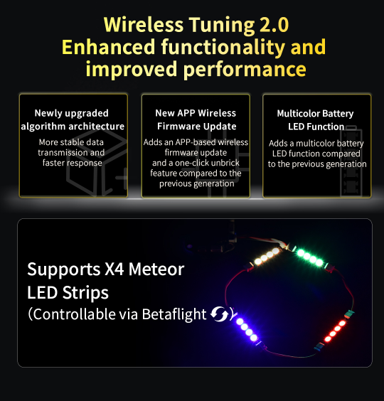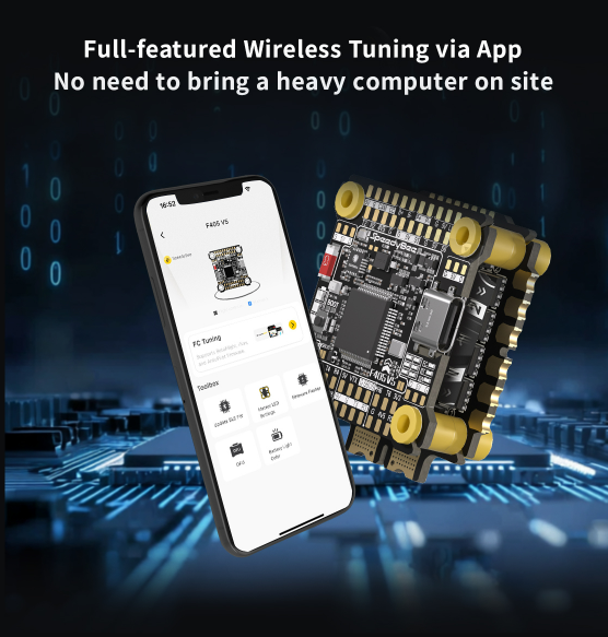 | Full-featured Bluetooth Tuning | Supported. Connect via SpeedyBee App for FC firmware flashing and parameter tuning. |