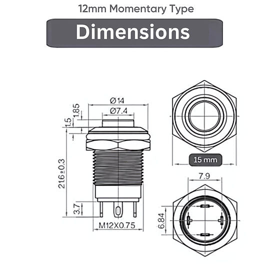 12mm Size Blue Led Stainless Steel Momentary Type Push Button Switch 5v-24v DC