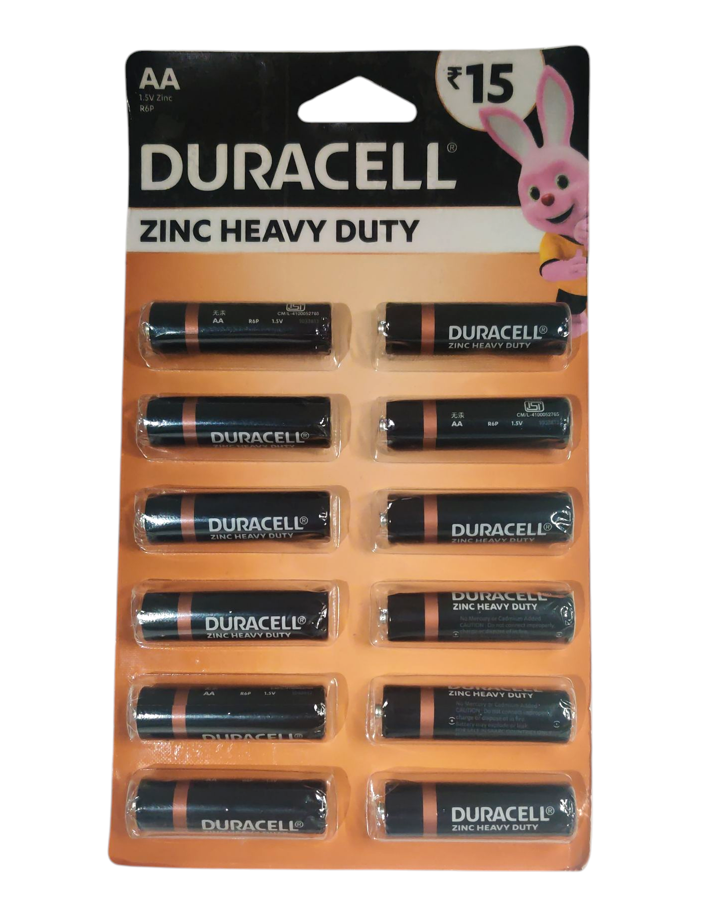AA 1.5V R6P Duracell Zinc Heavy Duty Batteries (Pack of 12)