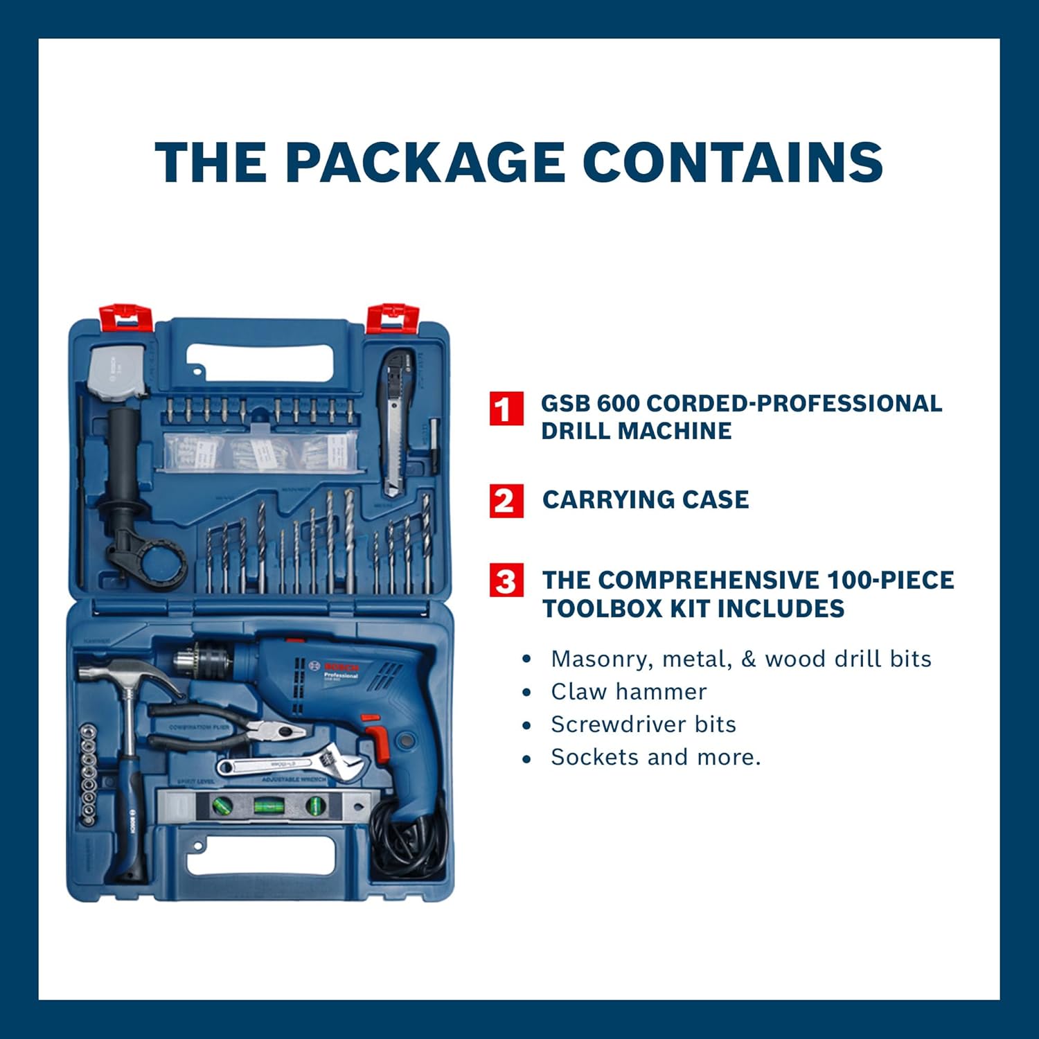 BOSCH GSB 600 Corded Electric Impact Drill with 100Pcs Accessory Set