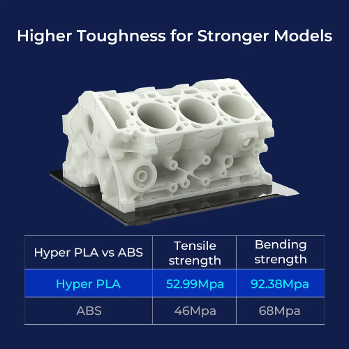 With higher tensile strength than ABS and higher toughness than traditional PLA, Hyper Series PLA brings better structural bearing capacity of the printed models.