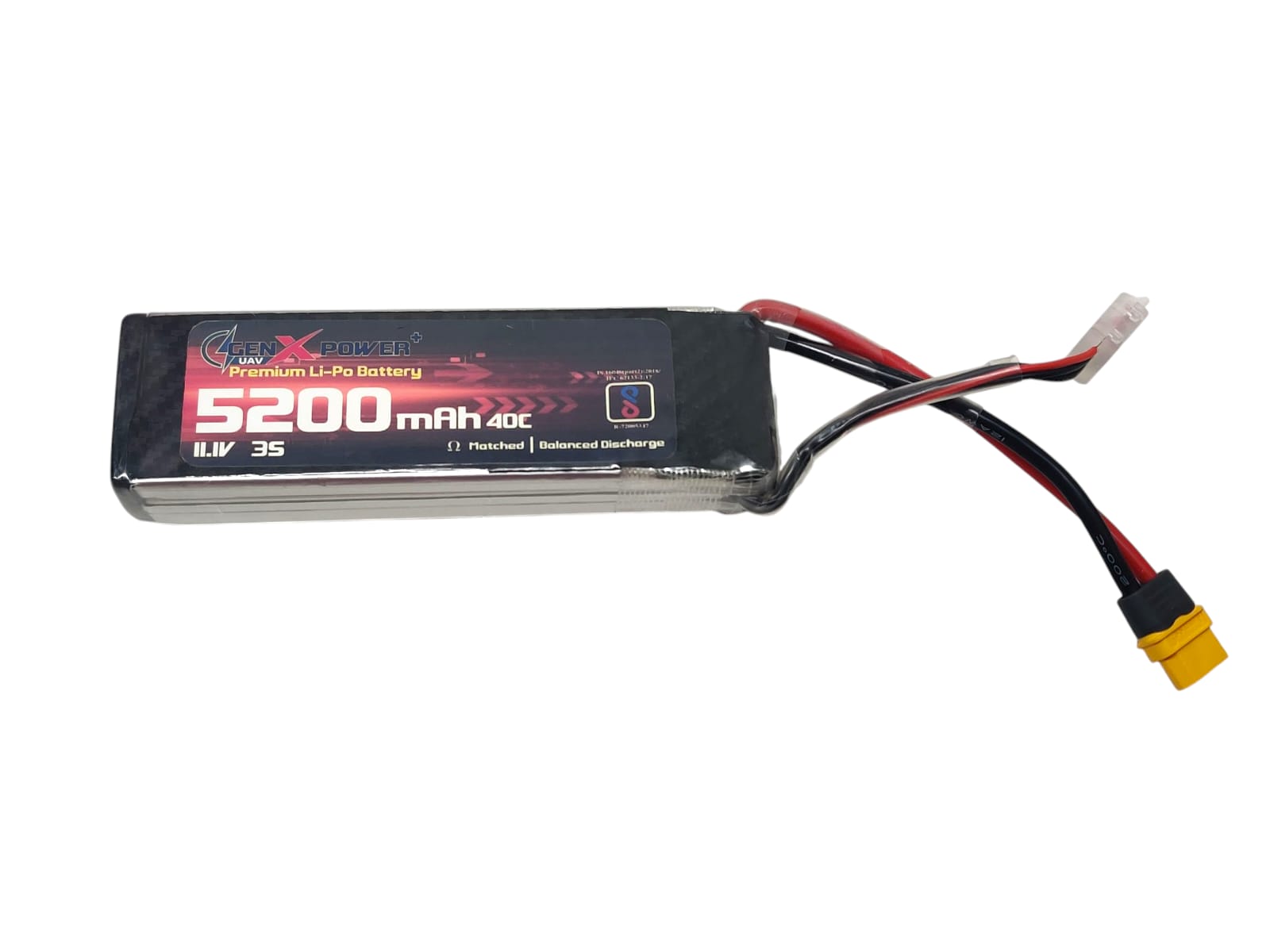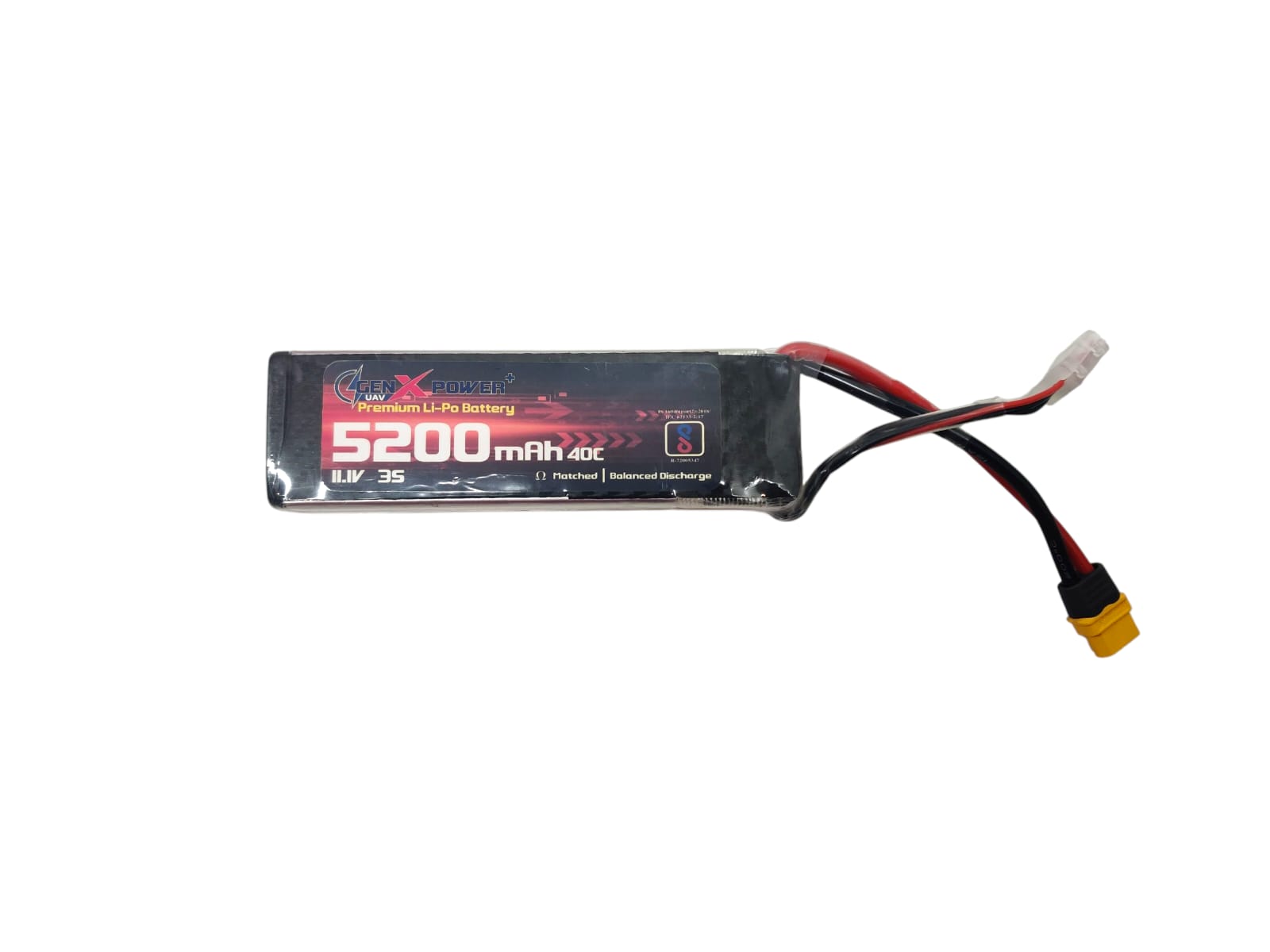 The GenX Power Premium Lipo batteries are the gold standard for performance in the High Discharge Lipo Battery Segment. The 5200 mah Batttery is a 40C discharge rating cell which has a burst current of upto 80C. With the best energy density and weight to energy ratio available in the market, the GenX Power Premium Lipo Batteries are the most compact cells in the segment and stand out from the other available batteries.