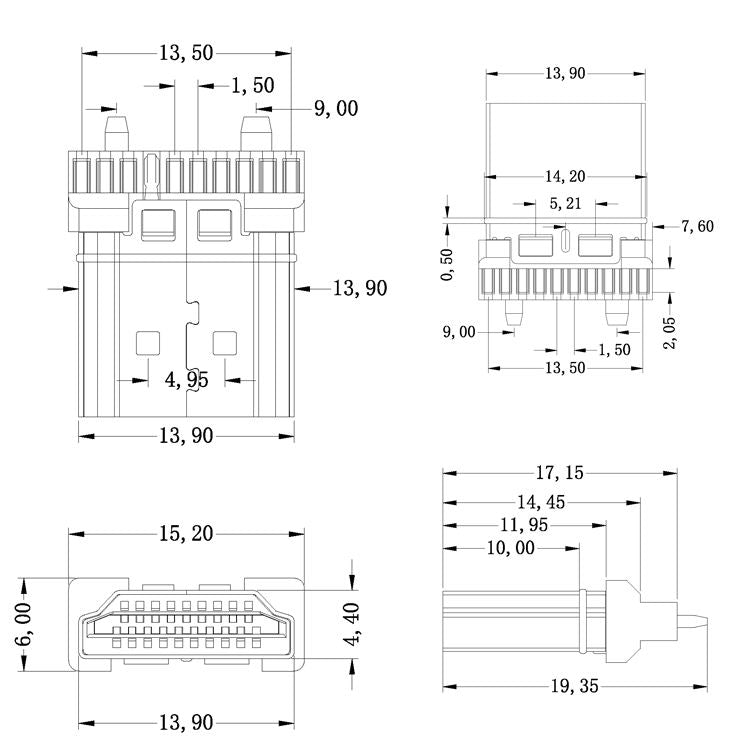 HDMI Gold Plated HDMI A Type 19 Pin Male Plug HDMI Connector with Dust Cap & Wire Clip