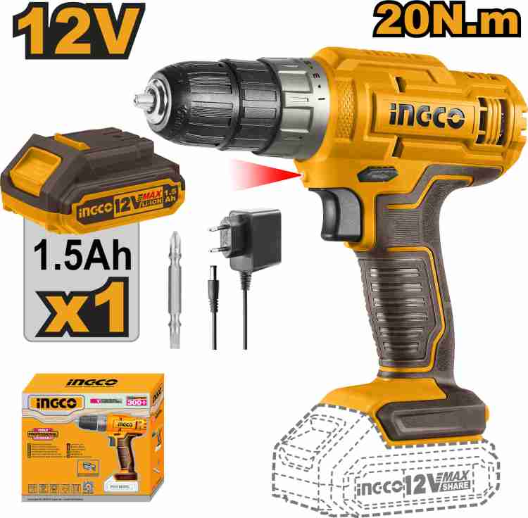 INGCO CDLI1218 12V Lithium-Ion Cordless Drill 20NM Torque (with Battery & Charger)