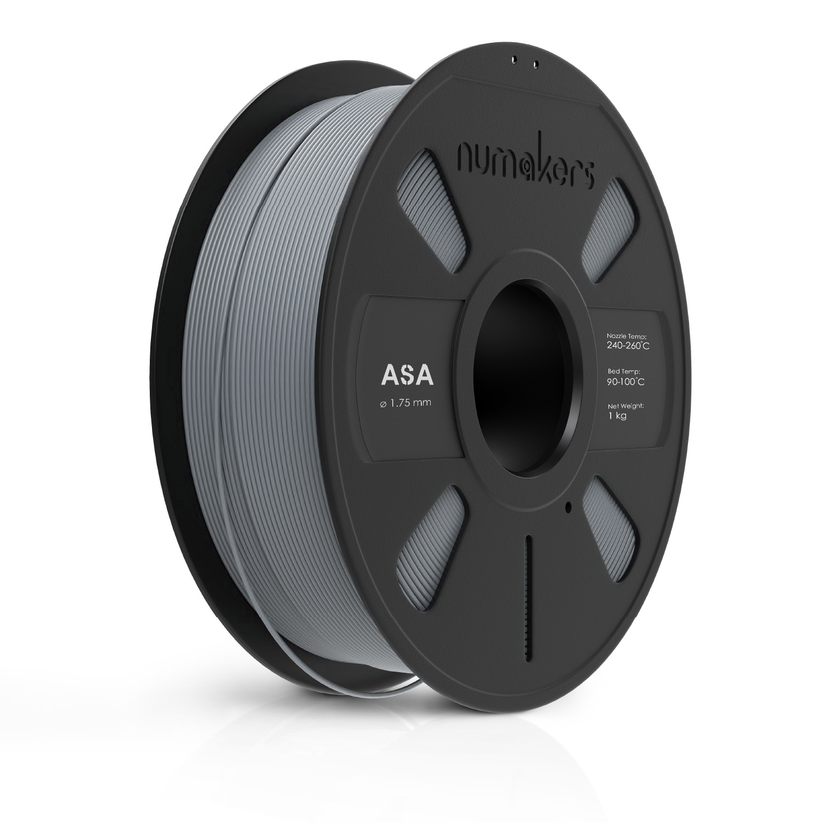 Numakers ASA 3D printing filaments are made of high-purity Acrylonitrile Styrene Acrylate pellets. They are the perfect choice for achieving technical-looking prints with exceptional durability and chemical, temperature & UV resistance. It is ideal for projects exposed to sunlight and the elements, relied upon by industries like automotive, marine, and RV.ASA is easy to print, offering enhanced durability and a sleek finish compared to ABS.
