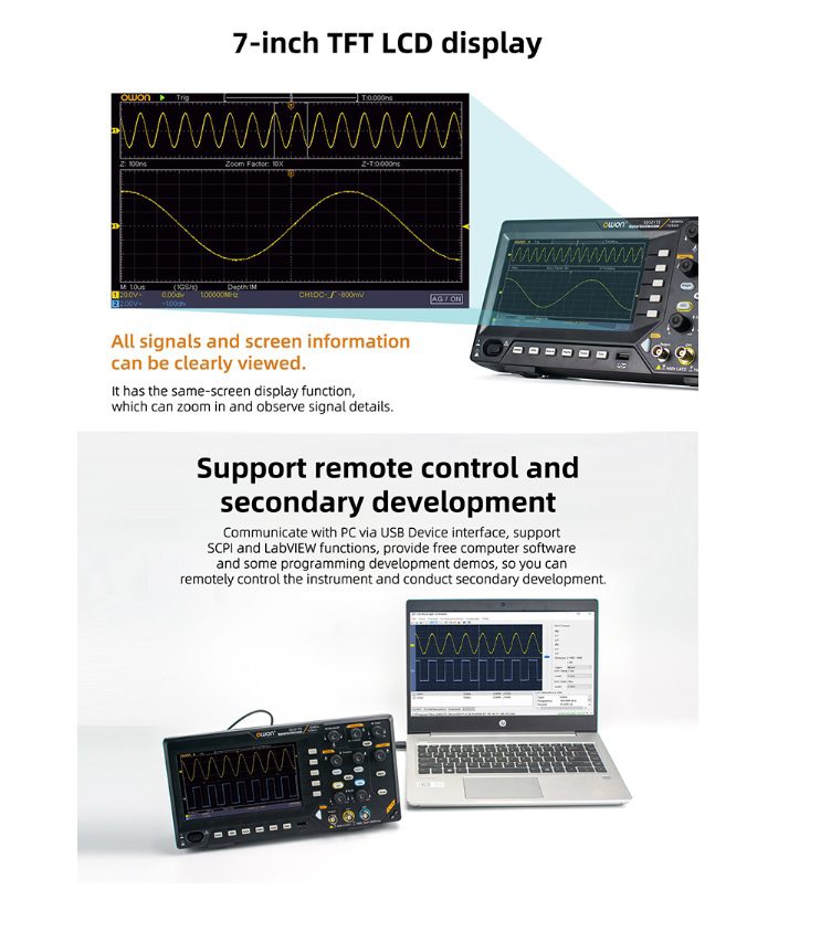 - Measuring Parameters: Vmax, Vmin, Frequency, Period, Mean, Vrms, etc.