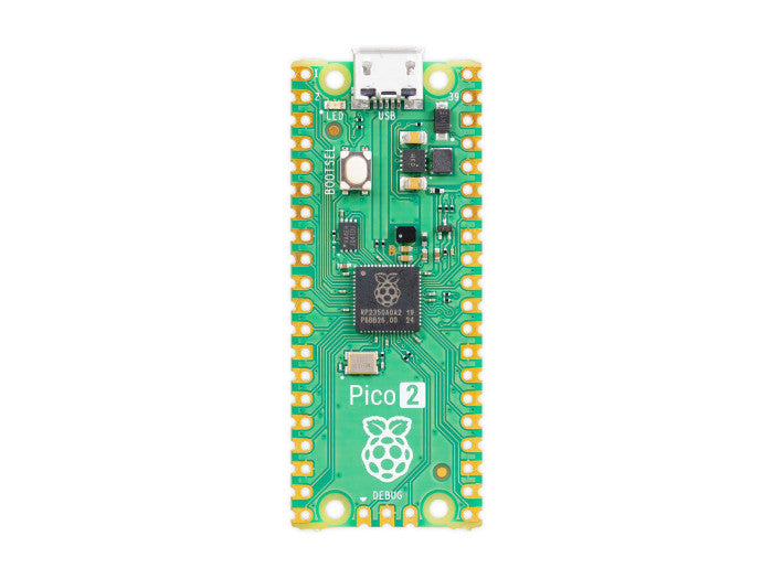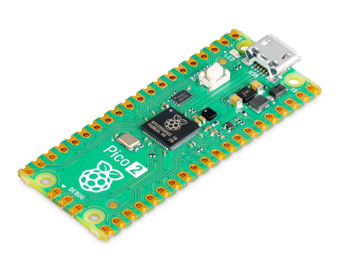 Raspberry Pi Pico 2 is Raspberry's new microcontroller board, built on RP2350: a new high performance, secure microcontroller. This version doesn't have the headers and debug port soldered.