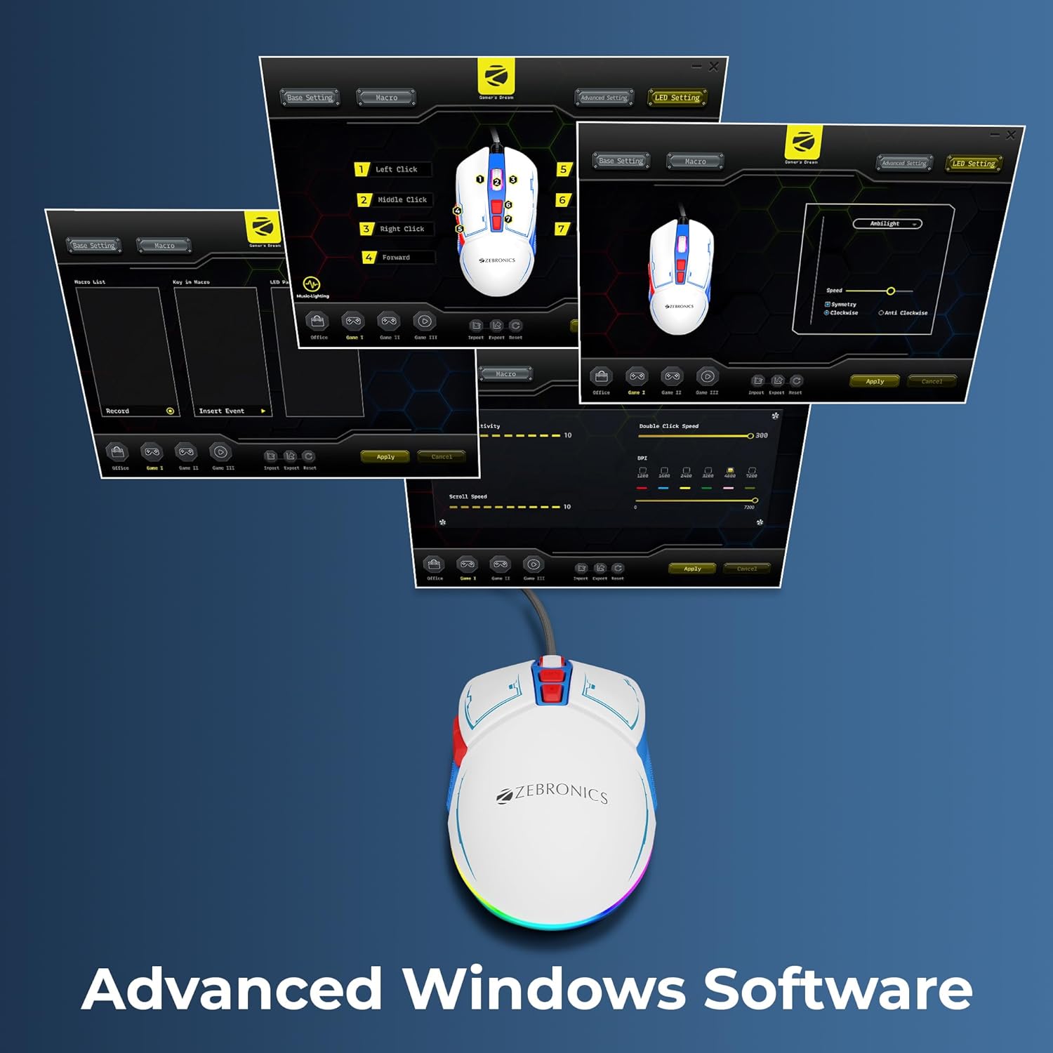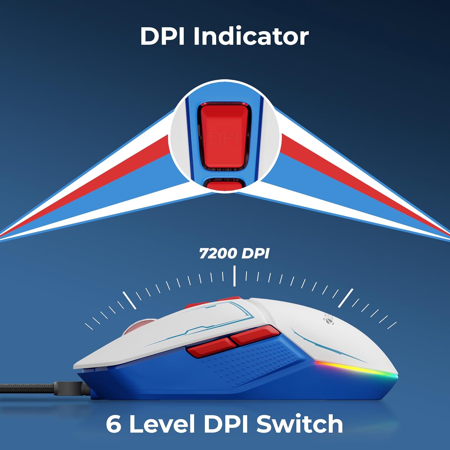 ZEBRONICS Astro Premium Gaming Mouse with Upto 7200 DPI, 7 Buttons, Braided Cable, High Resolution, Windows Software with RGB LED Light
